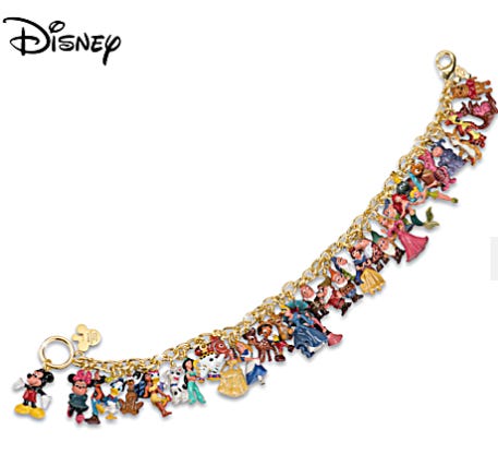 A celebration of the Magic of Disney, captured in a stunning Disney charm bracelet showcasing 37 beloved characters; licensed by Disney and available from The Bradford Exchange