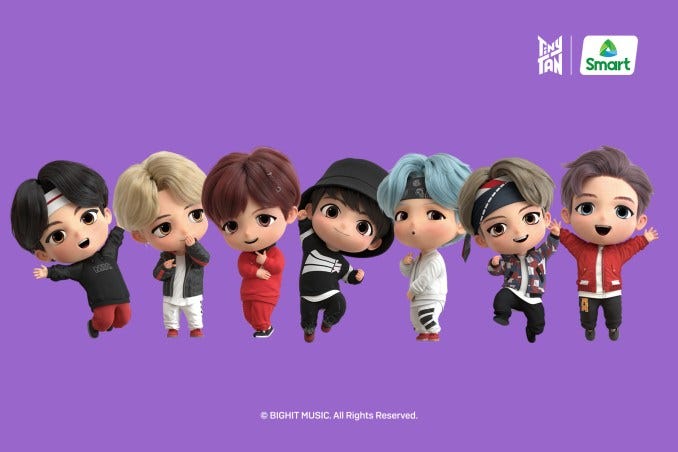TinyTAN, launched in 2019 as "BTS Character" before rebranding, are chibi-style animated alter egos of the members.