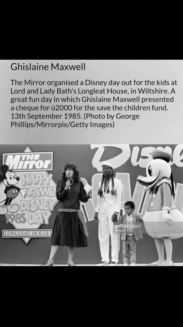 So where does the Disney rumor come from? In September 1985, Maxwell appeared at The Mirror’s Disney Day, a promotional event hosted by her father’s newspaper at Longleat House in Wiltshire. The event celebrated Disneyland’s 30th anniversary and featured Maxwell presenting a £2000 cheque to Save the Children.