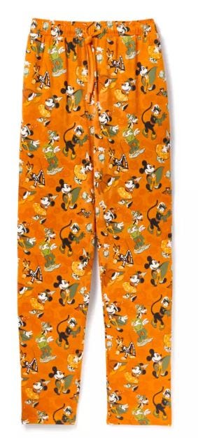These pants have an allover Halloween print that features Mickey, Minnie, Donald, Daisy, Goofy, Pluto, Chip, and Dale.