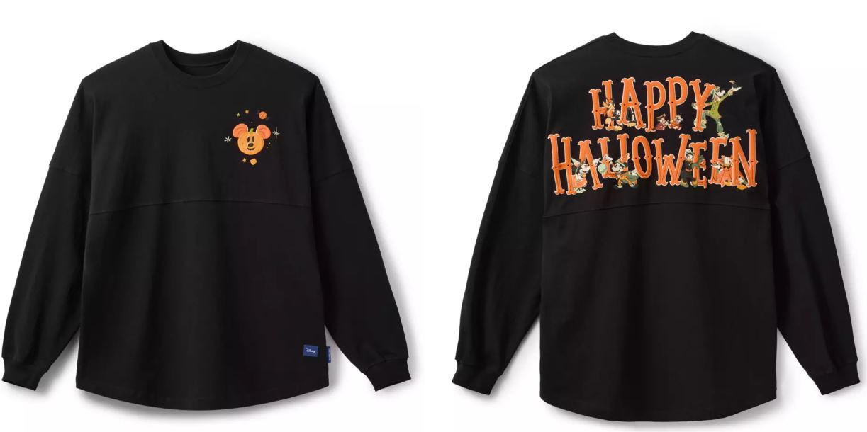 This 100% cotton Spirit Jersey features a Mickey jack ‘o lantern on the front and the words “Happy Halloween” with Disney characters on the back.