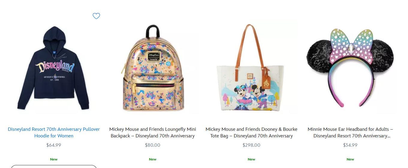 Disneyland is celebrating 70 years, and as part of the celebration, we have some brand new merchandise on the Disney Store website! Pieces include fashion, toys, home, collectibles, ornaments, purses, jewelry, etc., from companies like Loungefly, Pandora, Spirit Jersey, Dooney and Bourke, Crocs, Spider Bots, Droid Factory, and more.