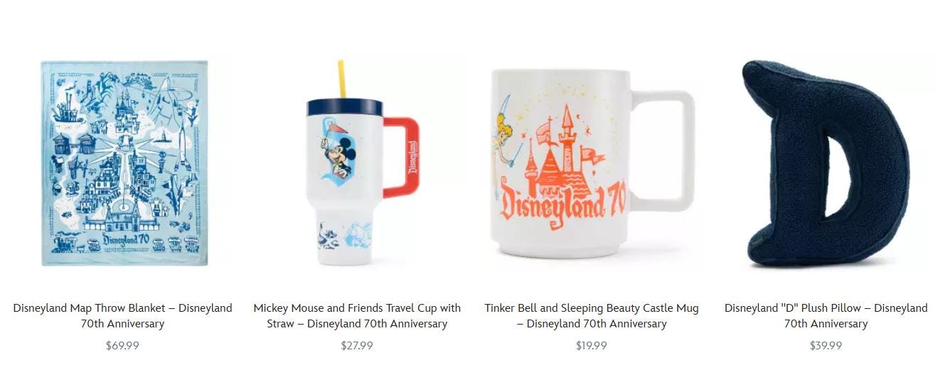 Household items are also included like the Disneyland Map throw blanket and Disneyland “D” pillow. There is also a travel cup with straw and a Sleeping Beauty Castle mug available.