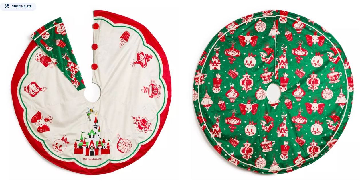 Print art on topside and contrast reverse side features Disney characters and attractions as holiday ornaments, including Dumbo, Orange Bird, Alien, Toyland Soldier, José, teacup, pirate ship, Space Mountain, ''it's a small world'' clock face, popcorn, pineapple swirl and Fantasyland Castle