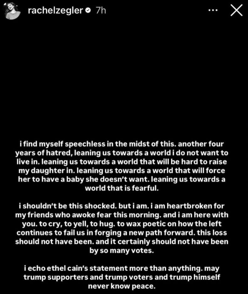 Zegler wished “no peace” to anyone who voted for Trump, but only got a talking to and not a pink slip.