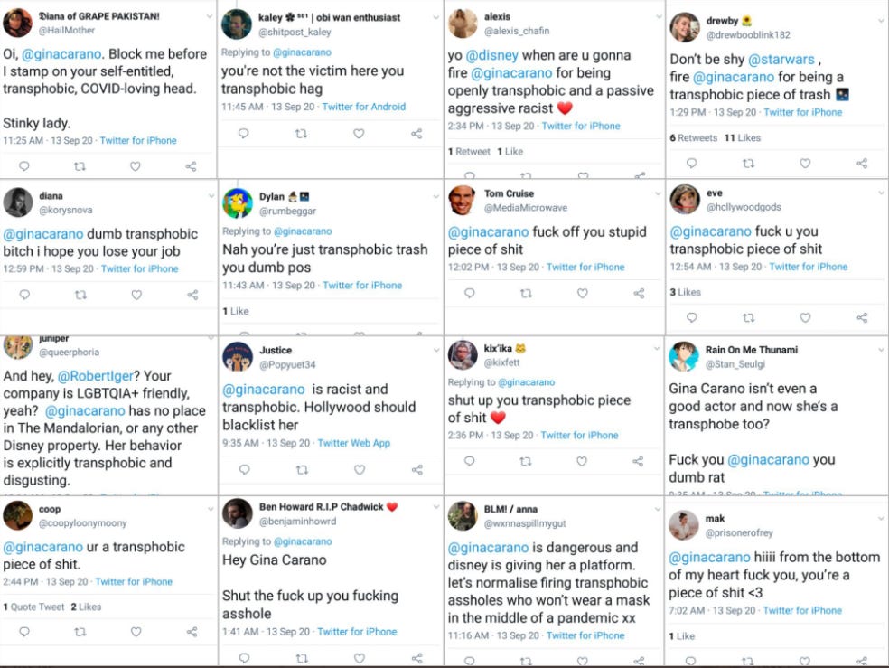 When those women were faced with bullying on a smaller scale, Lucasfilm stepped in immediately, but left Carano be harassed for months.