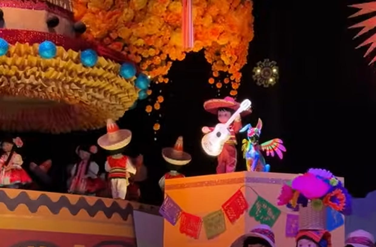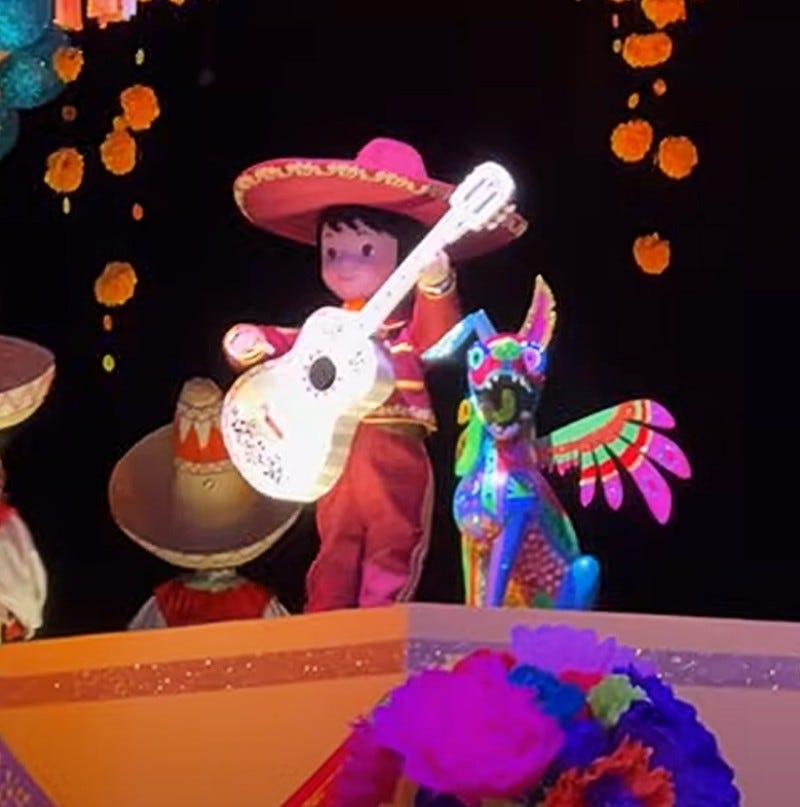 Along with Miguel and Dante, a marigold bridge has been added up to the ceiling to represent the bridge from the film that allows the dead to traverse between the world of the living and the land of the dead.