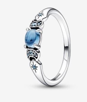“Celebrate the 30th anniversary of Disney's classic, Aladdin, with pieces inspired by the brave and self-assured Princess Jasmine. … this stackable ring features an oval moonlight blue man-made crystal at its center, surrounded with icy blue man-made crystals, referencing Princess Jasmine's characteristic teal blue color.”