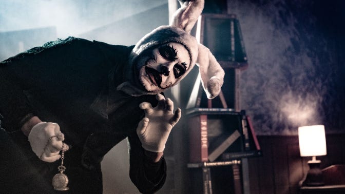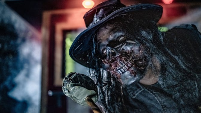 “Yee-haw! The disturbed cannibals that inhabit this farm move with an unsettling, unhinged energy where their distorted grins and vacant stares will leave you screaming for your mommy. You never know what's lurking the the cornstalks!”