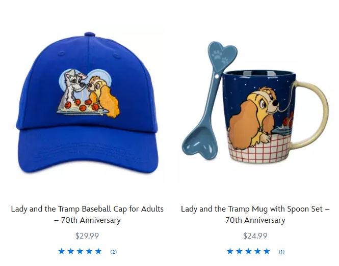 Other 70th anniversary “Lady and the Tramp” pieces are also available at the Disney Store.