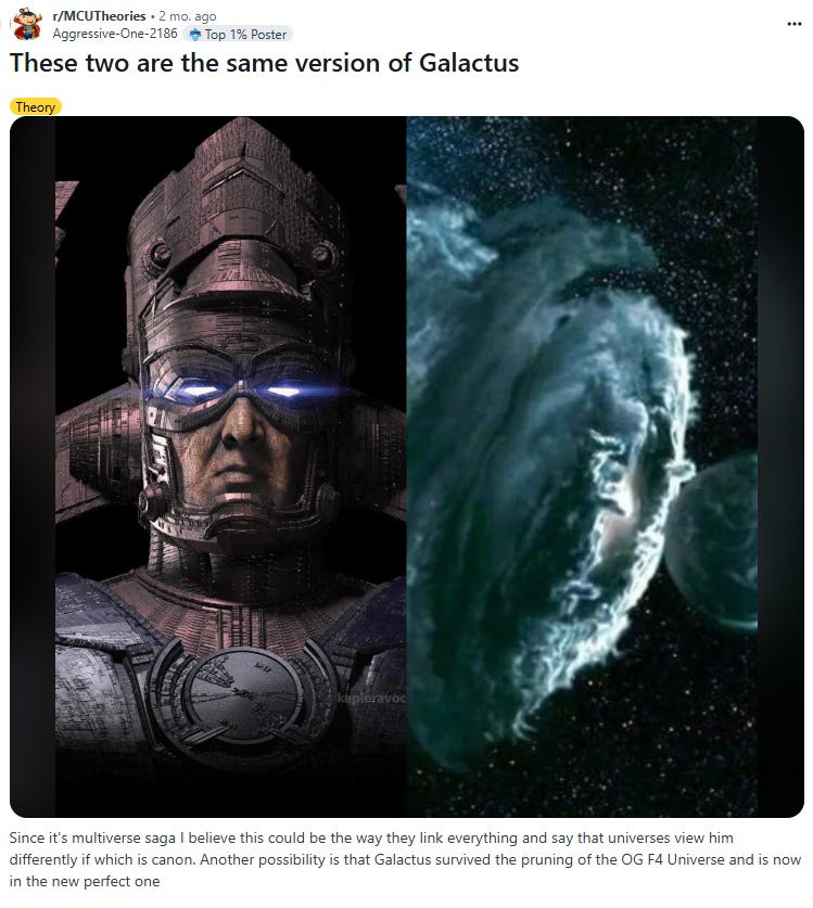 The Theory’s Core: A post from Reddit on r/MCUTheories claims Galactus is a singular entity across the multiverse, not a character with variants, explaining his varied forms like the humanoid giant or 2007’s cosmic cloud.