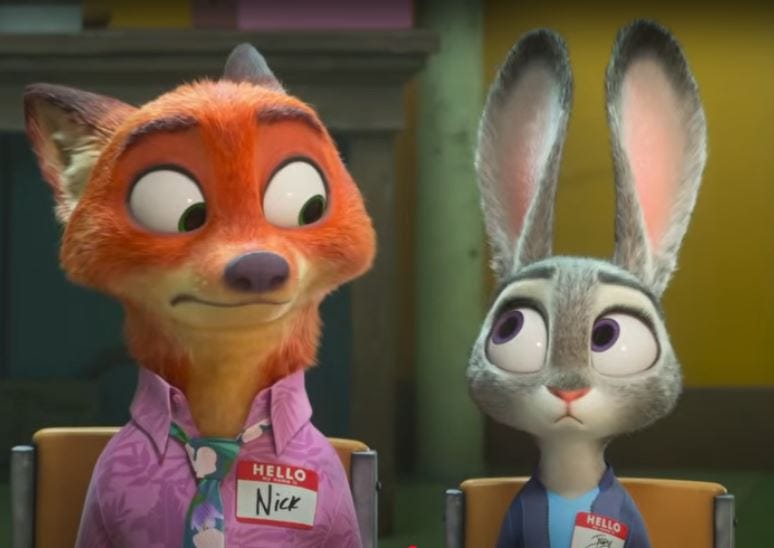 The trailer starts out with Judy Hopps (Ginnifer Goodwin) and Nick Wilde (Jason Bateman) being in “partner therapy” with other dysfunctional police partners.